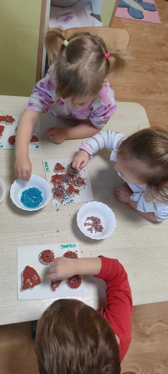 Dnia 10 grudnia w gr. I obchodziliśmy Dzień Świątecznego Piernika. Było trochę o historii, o tradycjach związanych ze Świętami Bożego Narodzenia a potem dużo zabawy w „wypiekanie” pierników z masy solnej, malowanie i ozdabianie.